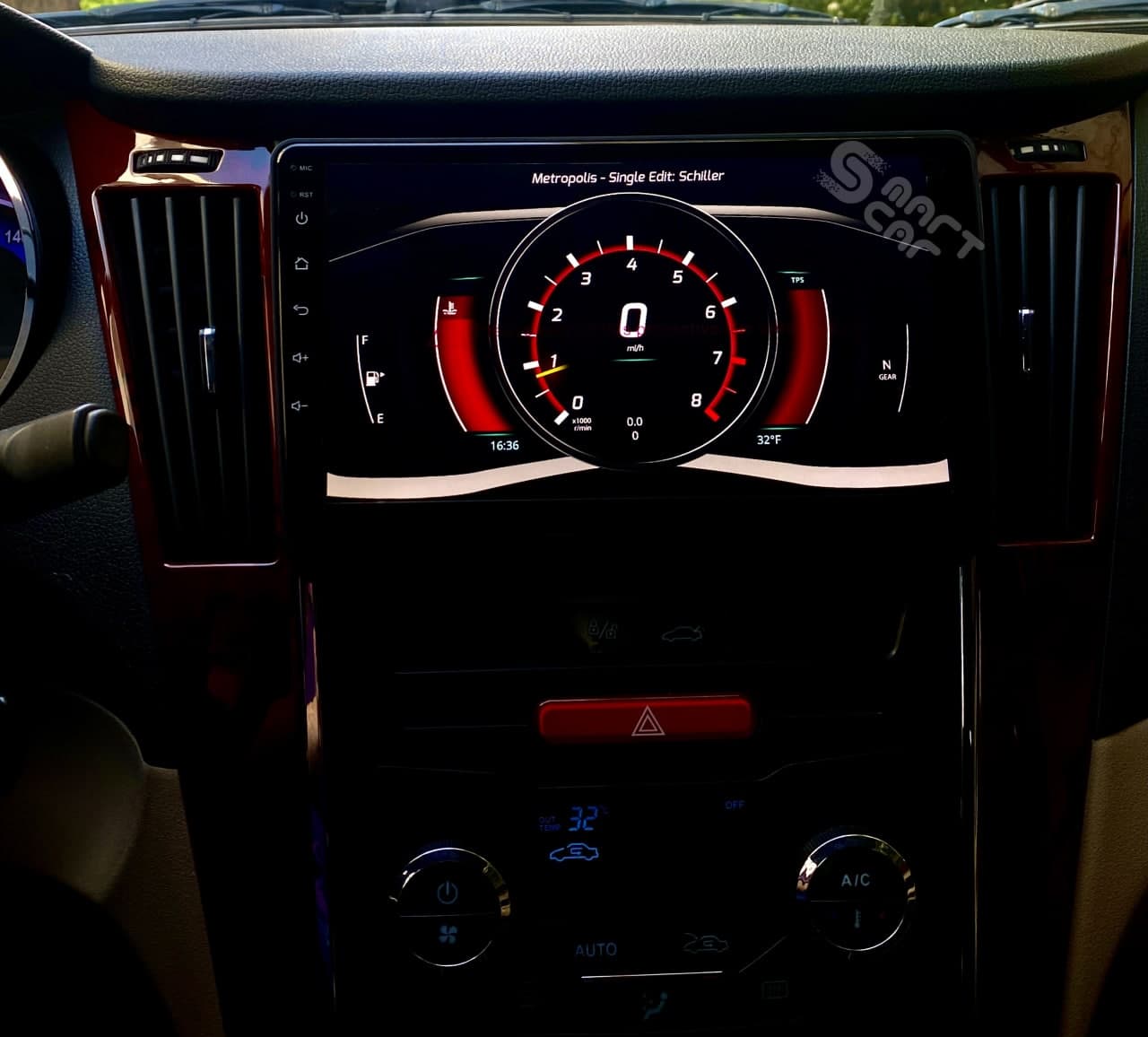 در طراحی جدید تمامی برنامه ها در یک صفحه قرار دارند و به همه برنامه ها دو تم تیره و روشن اختصاص داده شده که با روشن و خاموش شدن چراغ اتومبیل فعال می شوند